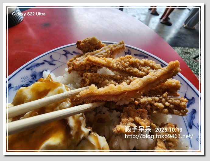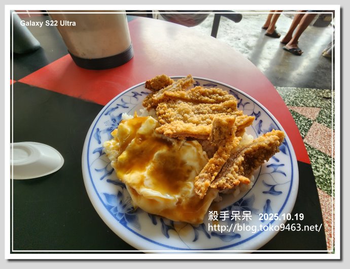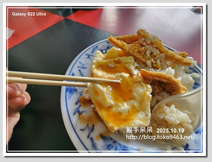 大與小好像差在飯量!!白飯淋上肉燥滷汁,附上一顆荷包蛋會沾上醬油膏!!而重點炸排骨,這種價格店家排骨用現成調理冷凍,但是店家還是用新鮮豬肉片沾粉現炸!!這邊排骨的肉片比較薄炸完後吃起來偏脆乾