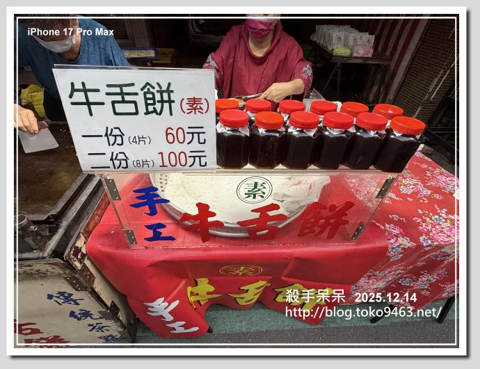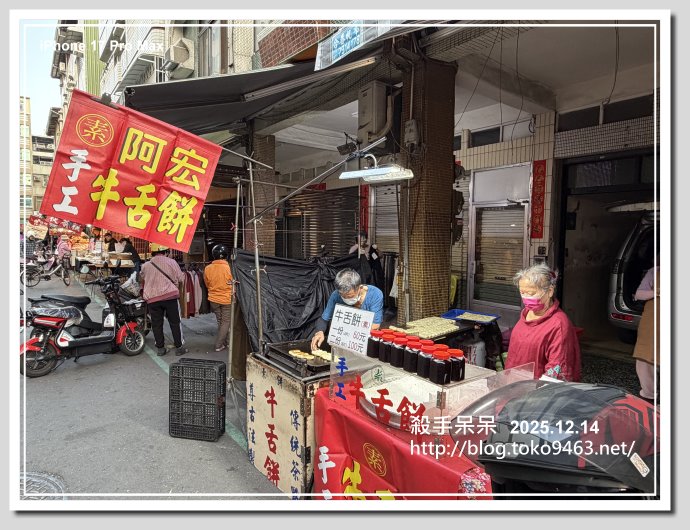 這家出沒在台南.高雄各大菜市場!!而且沒有固定的行程,下個星期休假的時間會在這星期日在臉書公佈!!而會去在前一天公佈明日擺攤的菜市場與位置,並會在留言底下前12位可以預訂!!其實沒有預定倒也沒有關係,現場買機會很大!!店家早上6點就開賣,依照我的經驗7點半以前其實都很好現場買的到!!因為市場的人潮不多,不過這段時間想買到剛出爐的牛舌餅就要憑運氣!!最保險就是等第一爐