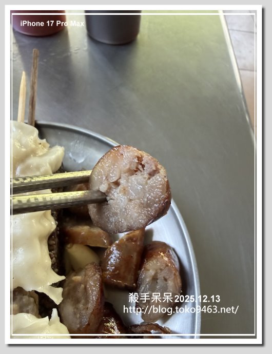 這邊香腸是古早味的黑香腸!!黑香腸特別之處就是中藥味超重外香腸的肥肉塊比例也比一般的香腸多