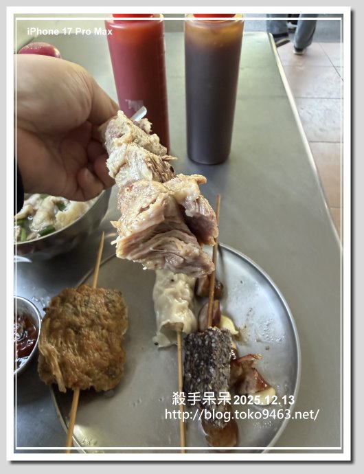 雖然這家有很多少見的關東煮料!!像九層塔黑輪或是肉餃,這種年輕人接受度會比較大!!從前面整鍋的照片很多東西都已經挑出來沒有放在湯裡煮,有些是不耐煮像外層是肉餃或是燒賣,不然就是敗市沒人買,肉餃裡面都是肉燥!!不過外皮就是不耐煮,外皮完全都已經泡爛!!九層塔黑輪也是都已經煮到軟爛,不過吃起來九層塔的香氣與黑輪片真的很搭,如果用烤的九層塔的香味一定更濃,菊花肉一串$50原其實價格還能接受!!已經煮到軟嫩