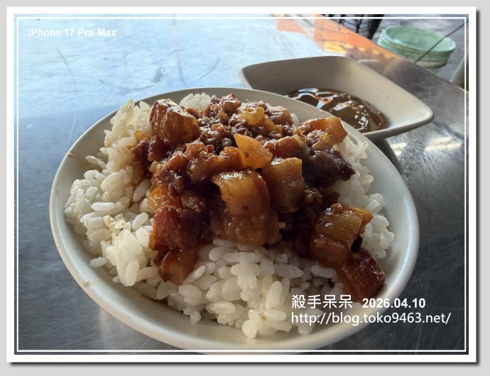 這家的肉燥飯也是肥肉丁切角的肉燥!!因為米飯煮得比較乾再加上滷汁淋得很少,資起來偏乾