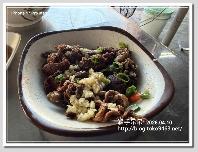 必吃的美食而且還是限量!!基本不到中午就賣光一份5顆魚腸半煎炸料理還能完成保留整顆魚腸的完整性,虱目魚腸在怎麼料理還是多少會有魚內臟的腥味!!而這家煎魚腸撒上蒜末.蔥花.辣椒,種些重口味辛香料與其說能壓魚腸的腥味,到不如說能讓煎魚腸更加美味!!尤其是大量蒜末與魚腸一起入口,蒜末的辣味解膩魚腸油脂同時讓腥味不會讓那明顯