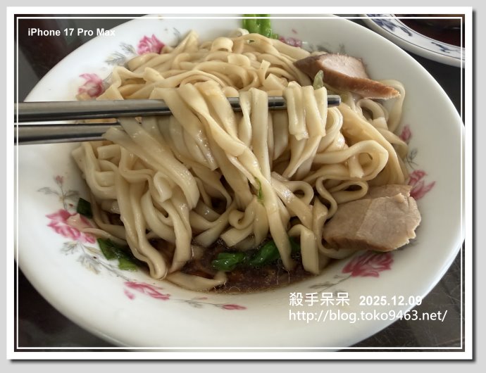 這邊的麵體只有一種可以選擇??因為店家的麵是自製!!即使我點小碗,店家給的豬肉片還不少!!不過似乎沒有發現這碗麵好像沒有看見肉燥??外省麵幾乎都沒有看到在麵裡加肉燥滷汁!!而調味僅用特調的醬油拌麵,而這一家也是不過這家的醬汁也沒有加蒜頭下去增香,醬汁整體偏甜!!對於重口味的人味道可能會偏淡,而自家自製的白麵條!!我覺得口感偏軟