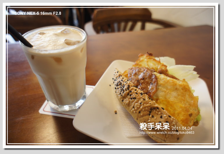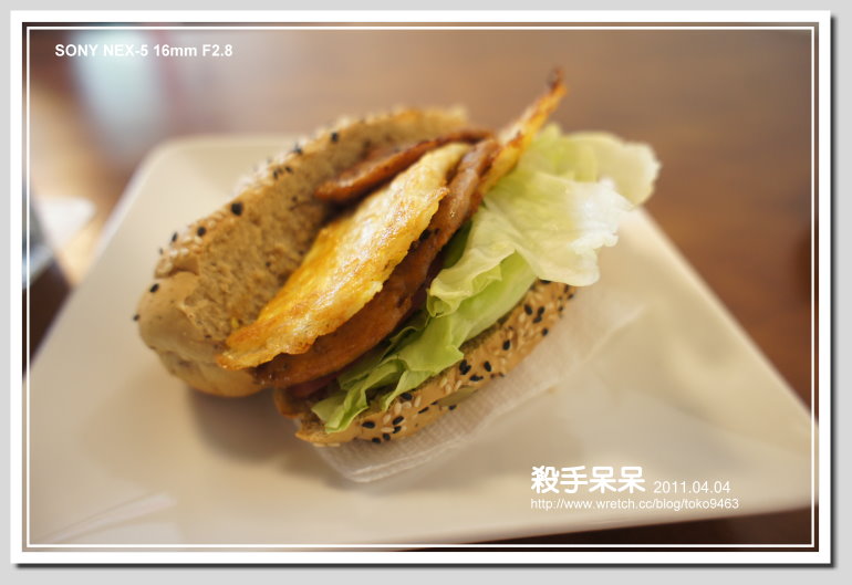 這家店所以提供的早餐相當簡單也很陽春,這燒肉堡的生菜讓我驚訝!!