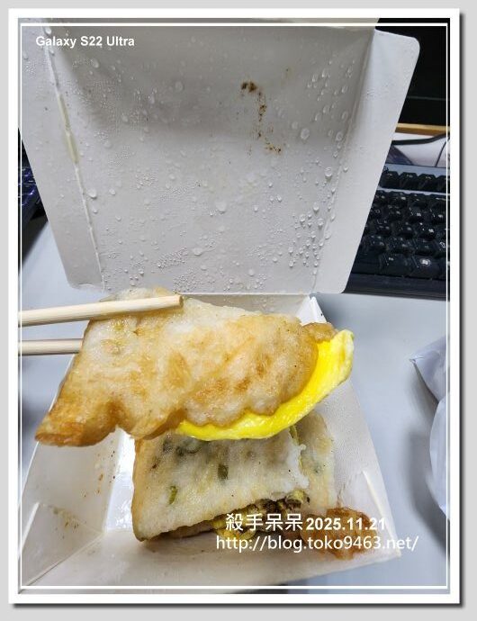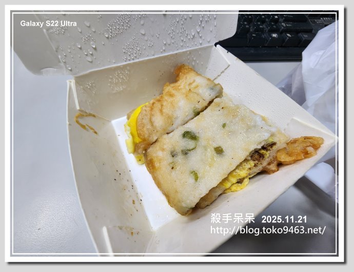 打開盒子的我一個念頭是誰偷吃我蛋餅??不過想想我蛋餅為了保溫我放在置物箱裡…..