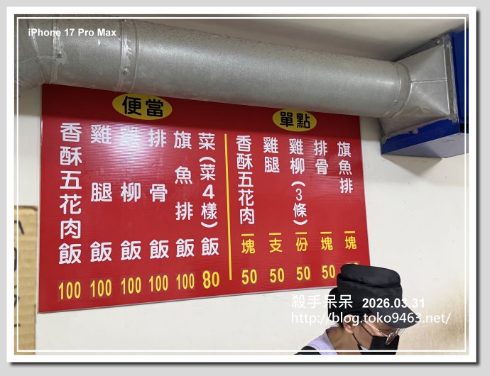 這一家傍晚下班時段經過店外一定有超多人在排隊!!當下想究竟有多好吃??於是我也出現在排隊的人群中…..這家店根據介紹好像是家人經營,只有外帶並沒有提供內用!!而大家排隊在等待選菜!!而店家負責夾菜的只有2個人再加上主食並沒有事先炸好一堆,這應該是排隊的主因