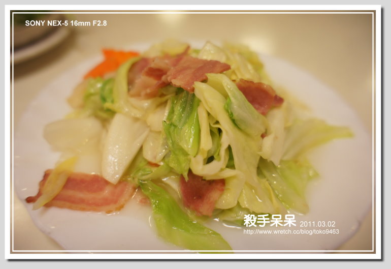 高麗菜好像炒過頭,少了清脆顏色!!不過現在高麗菜很便宜,這盤菜似乎少了一點。